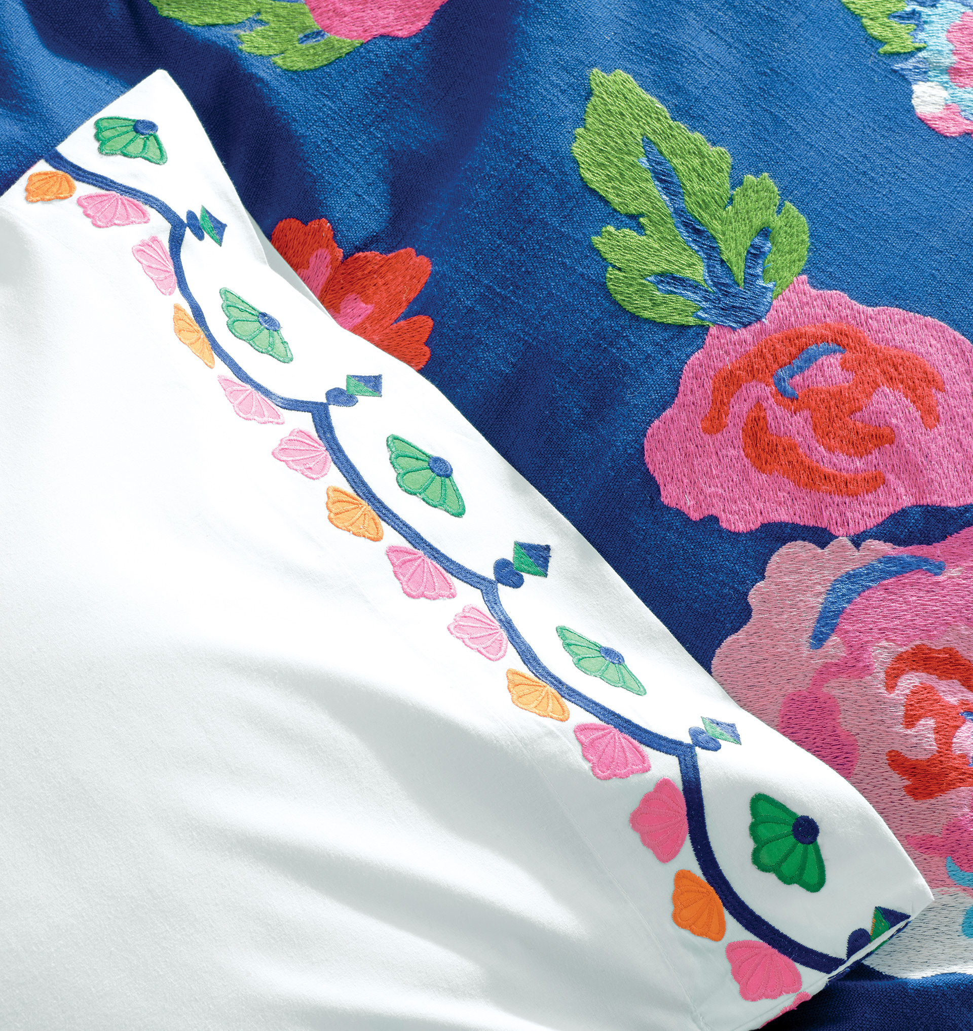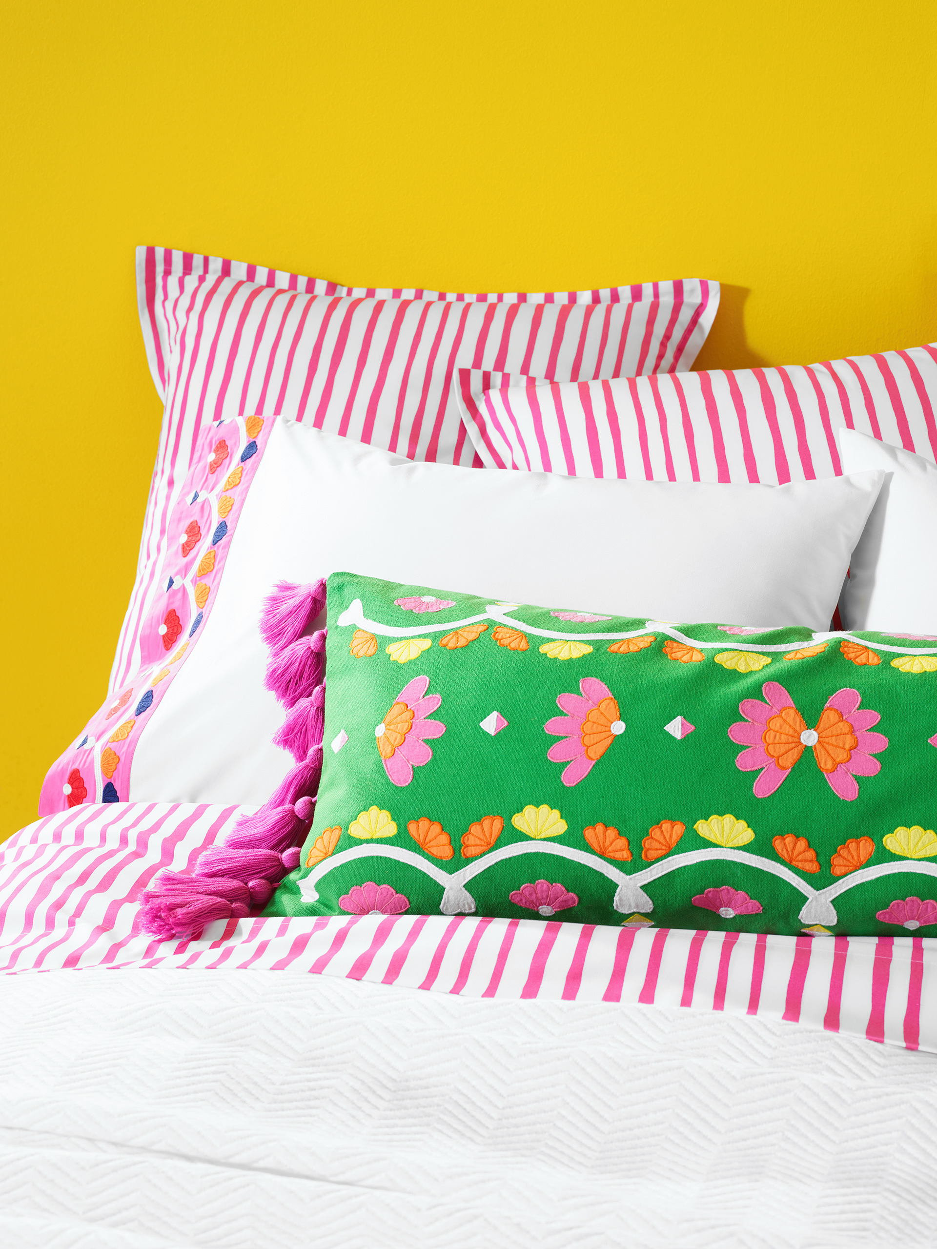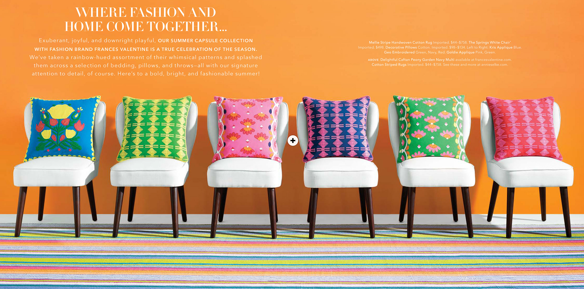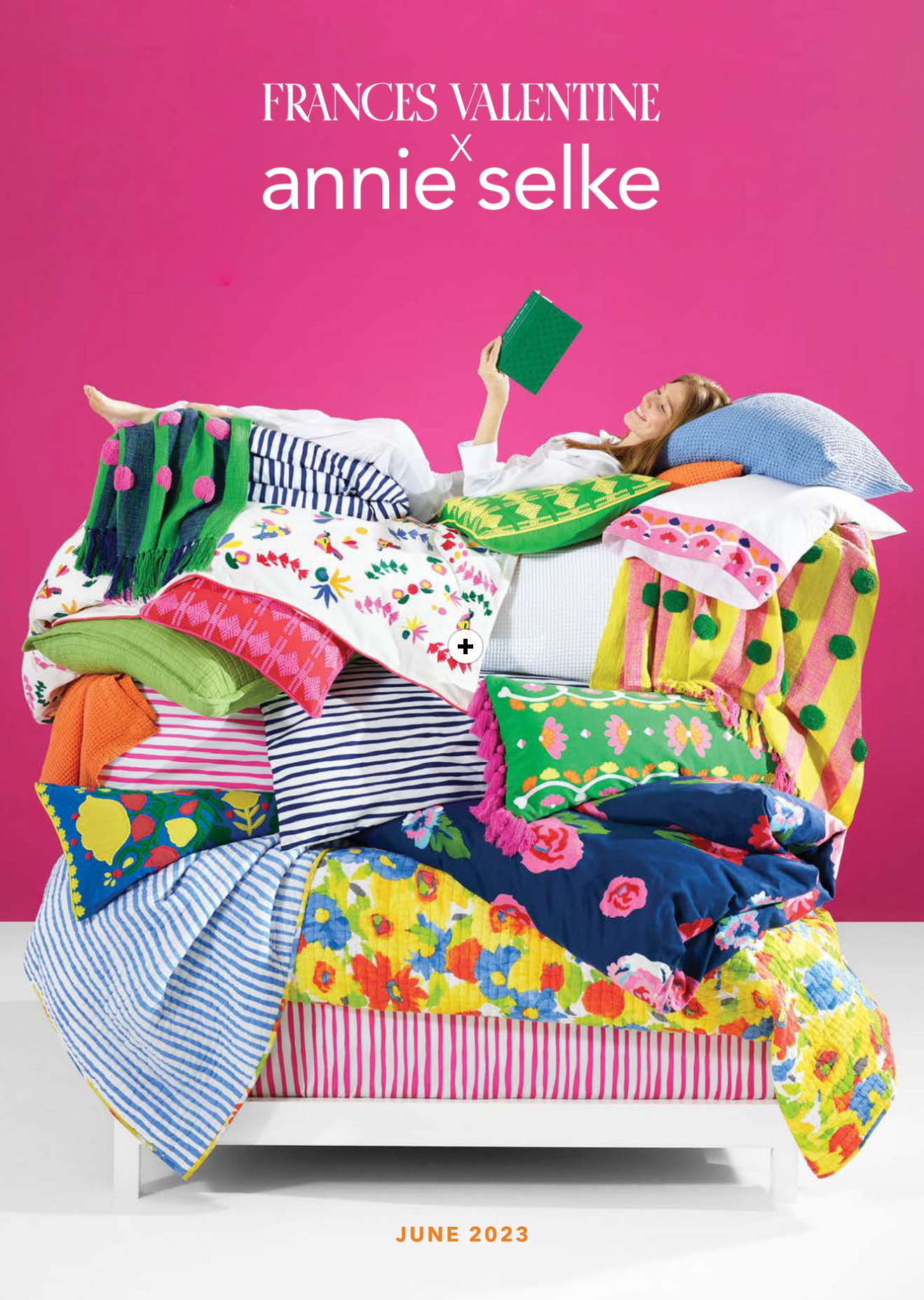 During my time as Senior Designer at Annie Selke, I partnered with Frances Valentine to reinterpret their signature prints for home décor, developing bold artwork for bedding and pillows inspired by their vibrant fashion line.