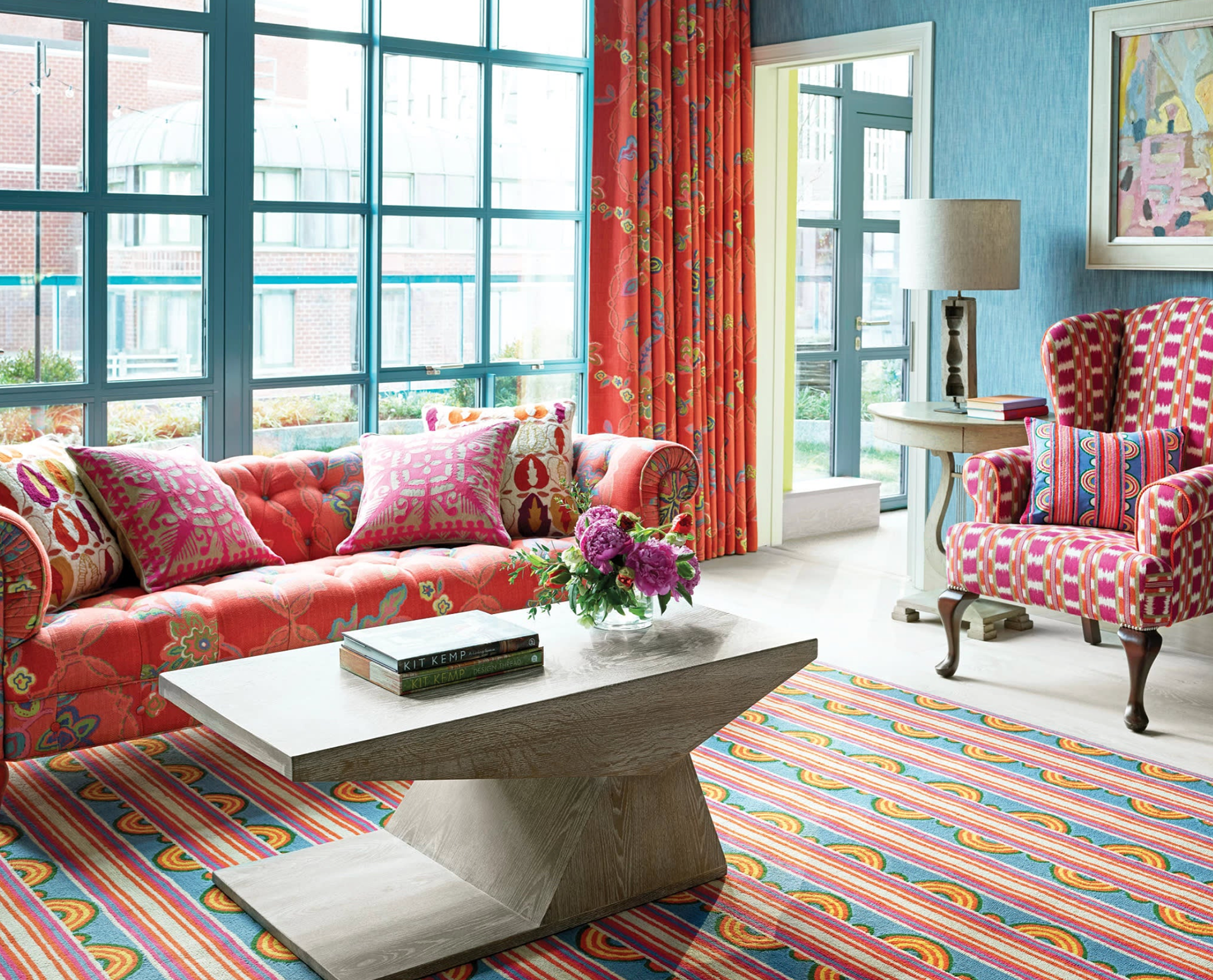 As Senior Designer at Annie Selke, I collaborated with international interior designer Kit Kemp, bringing her playful and vibrant aesthetic to life through textiles. I worked on the rugs, bedding and pillows, creating artwork and colorwork that reflected her bold use of pattern and joyful mix of color.