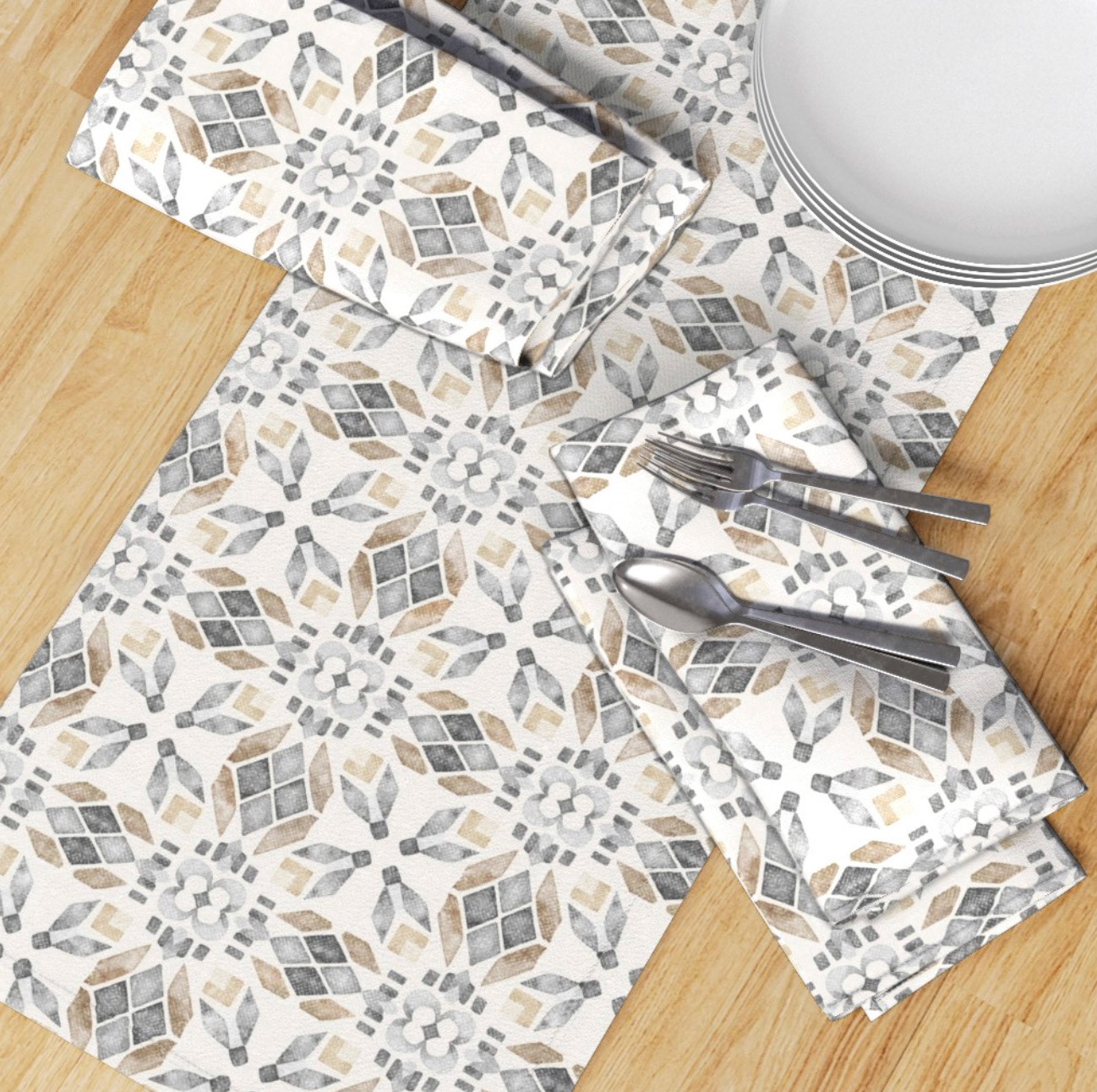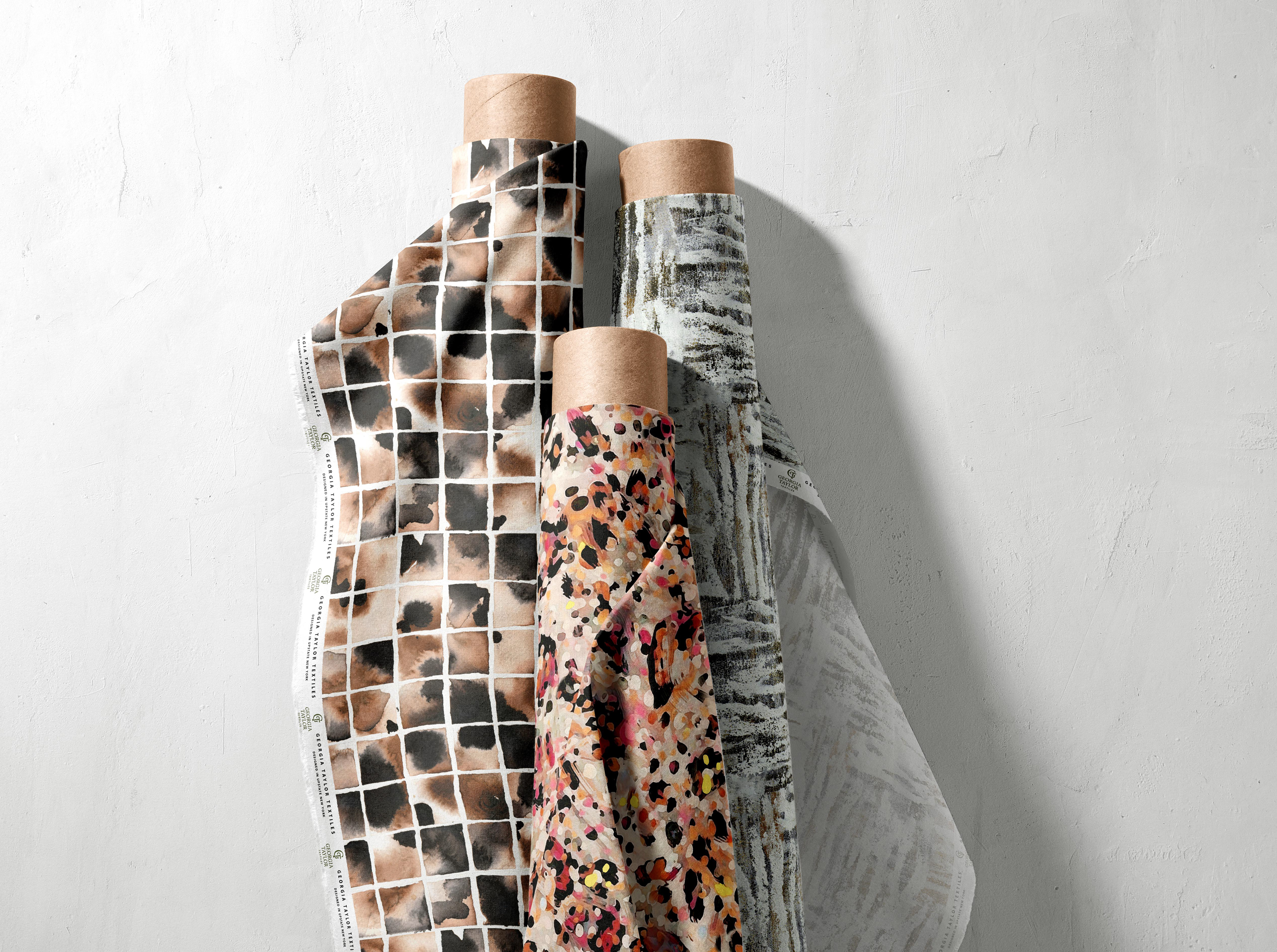 Below are examples of my original designs, developed by hand or digitally, then transformed into seamless repeats and product mappings that highlight their full design potential.